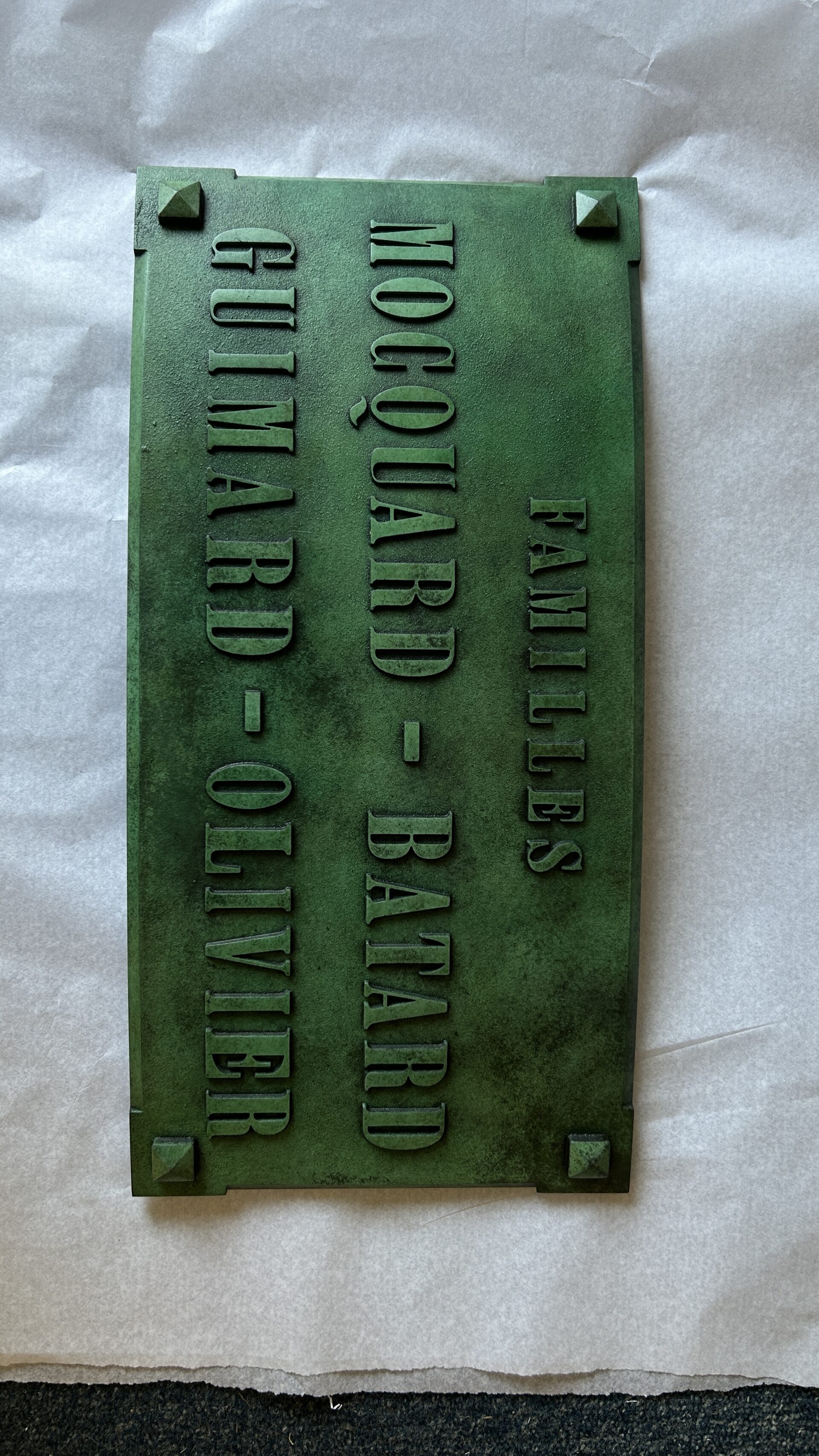 plaque_bas_relief_sculpte_armoirie_moule_bronze_patine