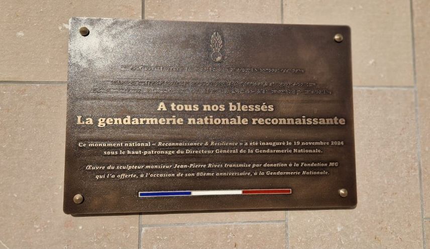 DÉTAIL D’UNE GRAVURE SUR PLAQUE COMMÉMORATIVE – BRONZE PATINÉ ET POLI